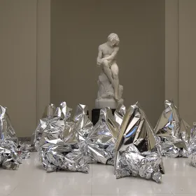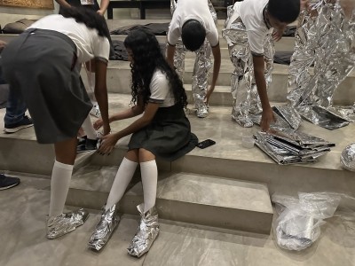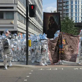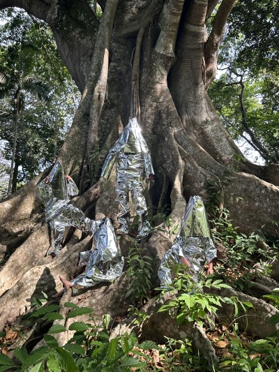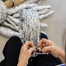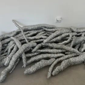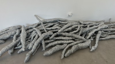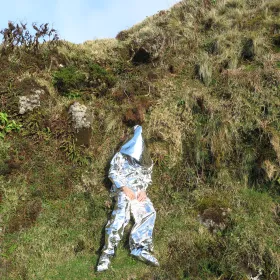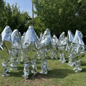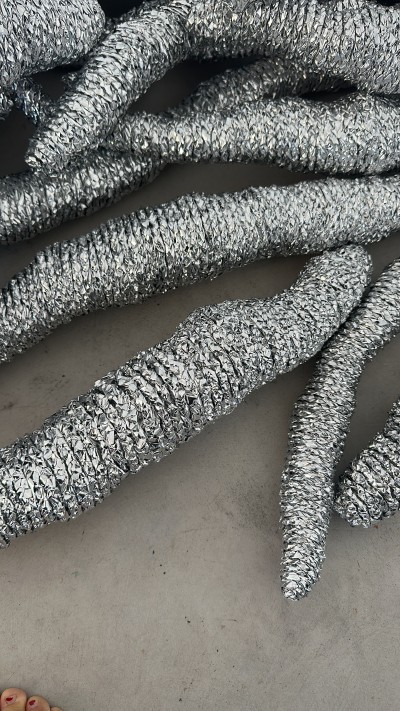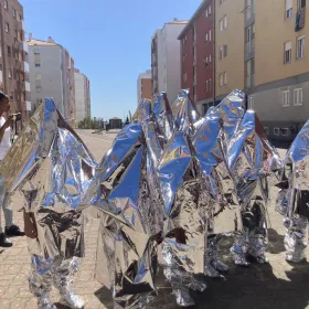 Her practice is a grammar of performance: characters, objects, and gestures arranged as a language of visibility and erasure. Each residue becomes a sign, reworked through collective making. In public space, these myths materialize, where craft and community intertwine to question labour, care, and future imaginaries. The development of this character has began in 2009 and continuous into 2025 as an existential inquiry into material and materiality.