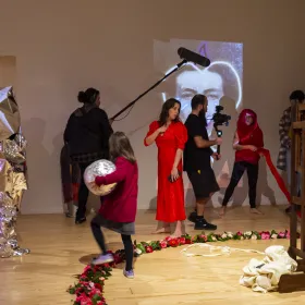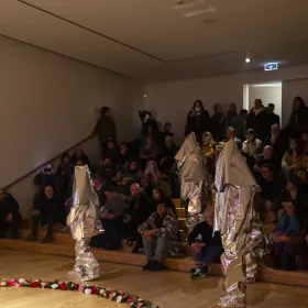 Based on the multiple echoes of the honoured artist — domestic gestures, political questions, gender fictions and games of self-representation — Luísa Mota's performance became a space for contemporary reactivation, where the bodies present came together to continue, in movement, Aurélia's vibrant legacy.