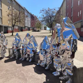 One of its final outcomes was the mural 'Crystal Beings', inspired by local narratives and co-created reflections. The Crystal Beings — recurring archetypal figures in Mota’s practice — were reimagined as fluid guardians of the neighborhood: reflective presences that transcend age, gender, and race, offering a poetic framework for collective visibility and awakening creativity as a pathway for transformation.